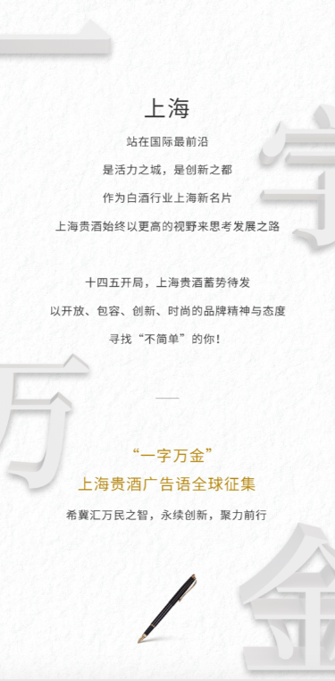 问鼎奖(1名):最终被采用的广告语,将获得每字1万元人民币的终极现金大奖,并授予“开云手机入口站官网登录-开云online(中国)”企业大使,尊享全年最高会员礼遇,同时获得开云手机入口站官网登录-开云online(中国)青澄黄贵酿1套(天青、阳澄、月黄)及价值14000元美酒礼券包等超值权益。